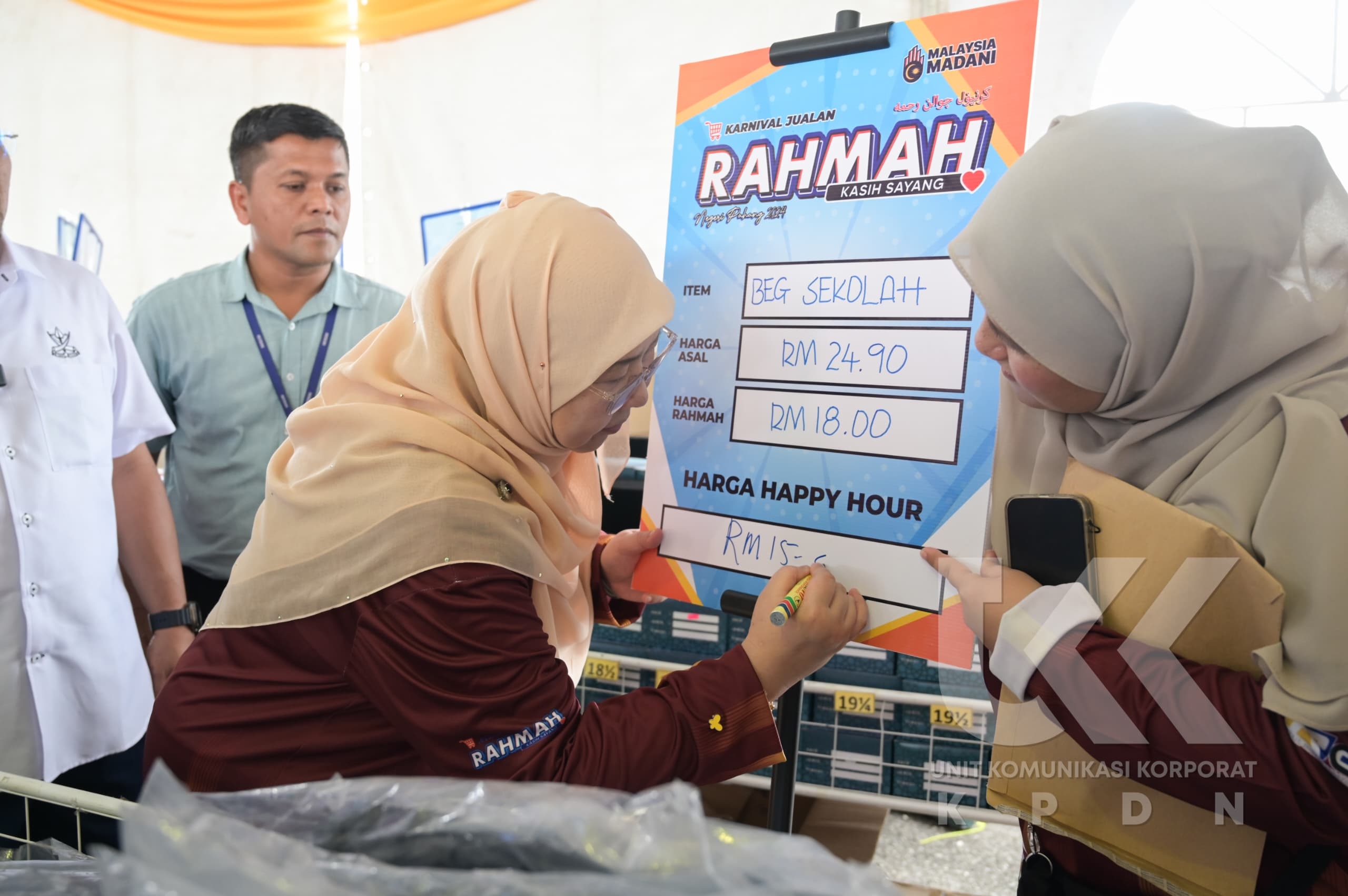 Karnival Jualan RAHMAH MADANI Negeri Pahang Tahun 2024 ini diadakan dengan kerjasama strategik bersama Pasar Raya Econsave, Pasar Raya BS Freshmart, Pasar Raya Mydin, FAMA Pahang dan Lembaga Kemajuan Ikan Malaysia (LKIM) Pahang yang menawarkan lebih daripada 250 item barangan keperluan harian dan barangan keperluan persekolahan yang ditawarkan dengan potongan di antara harga 10 hingga 30 peratus lebih murah berbanding harga pasaran setempat.
