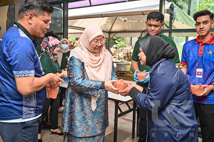 PUTRAJAYA, 26 Mac 2025, RABU - Sekitar Program Gotong-royong Bubur Lambuk di Perkarangan Taman Mini Kementerian Perdagangan Dalam Negeri dan Kos Sara Hidup (KPDN). Program turut dimeriahkan dengan kehadiran YB Timbalan Menteri, Dr.Fuziah binti Salleh yang turut membuat agihan bubur kepada para pengunjung Program Jualan RAHMAH MADANI (PJRM) dan juga pada anggota KPDN.