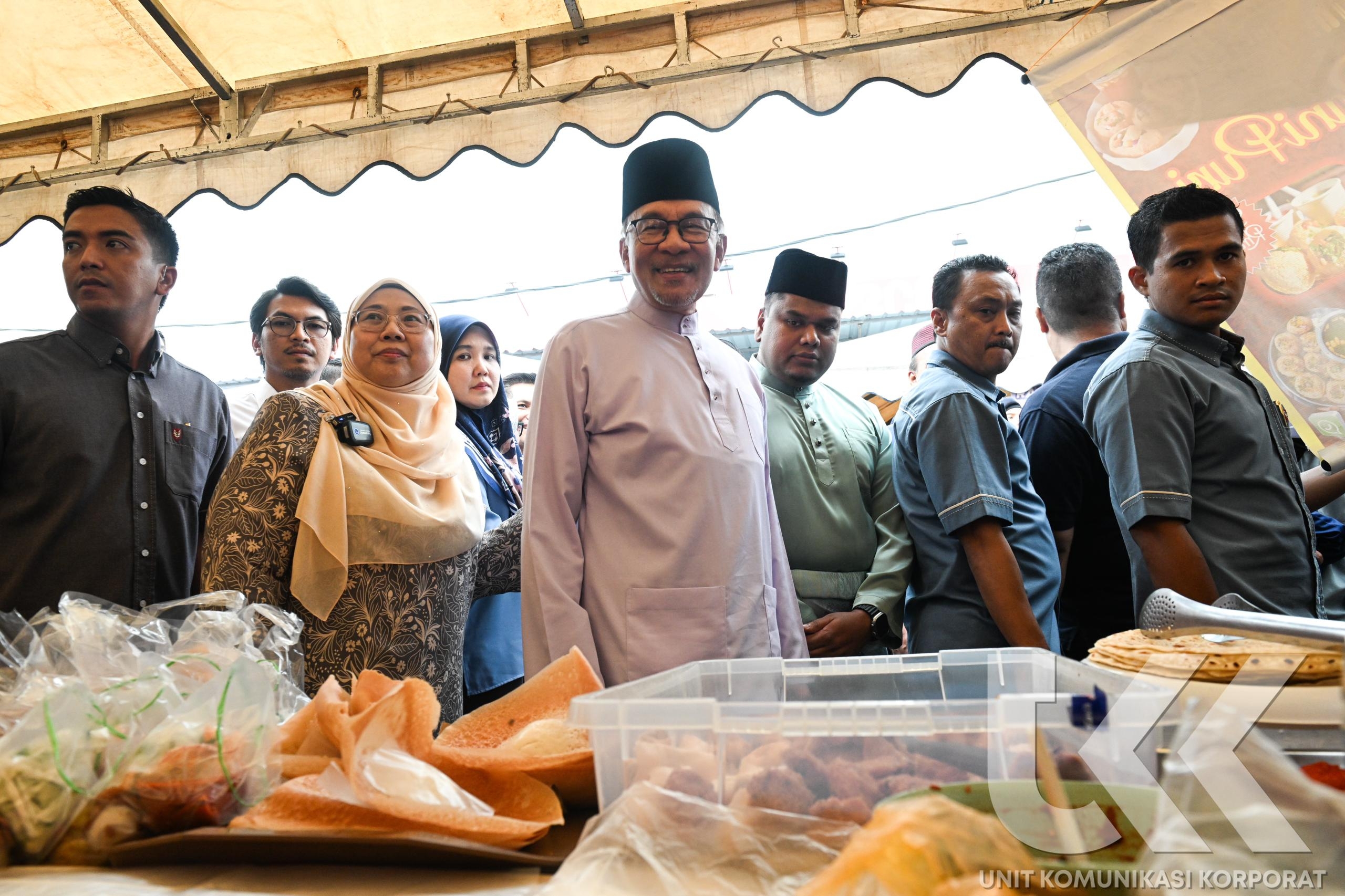 IPOH, 25 MAC 2024, ISNIN - YAB Perdana Menteri, Dato’ Seri Anwar Ibrahim bersama YB Senator Puan Hajah Fuziah binti Salleh, Timbalan Menteri Perdagangan Dalam Negeri dan Kos Sara Hidup berkenan meluangkan masa turun padang melakukan sesi walkabout di Bazar Ramadan RAHMAH (BRR) Taman Perpaduan, Tambun, Perak.